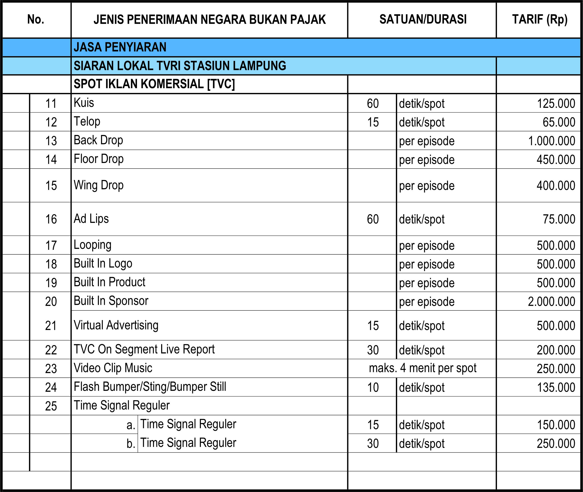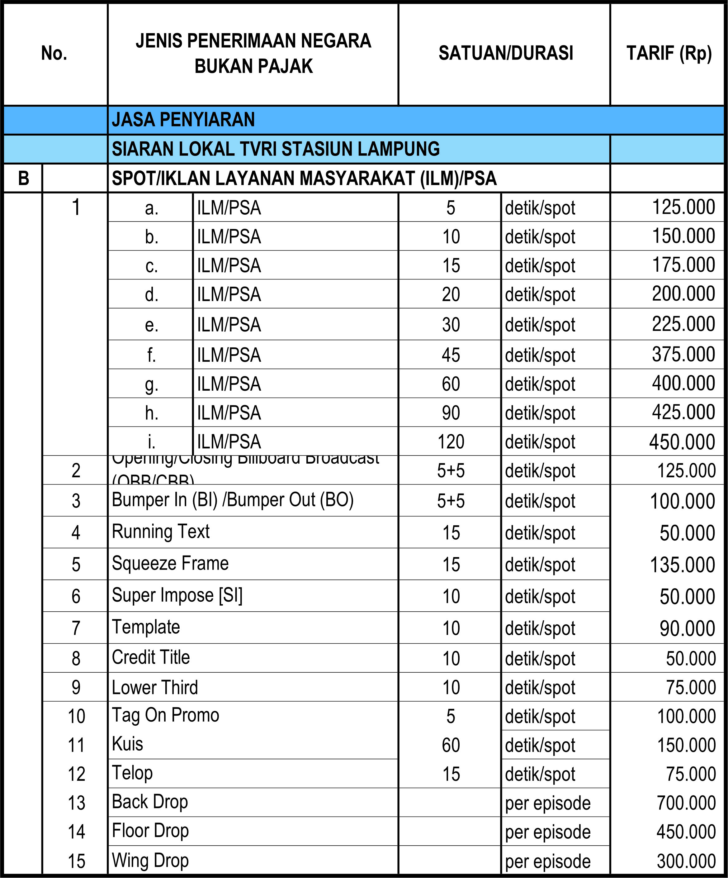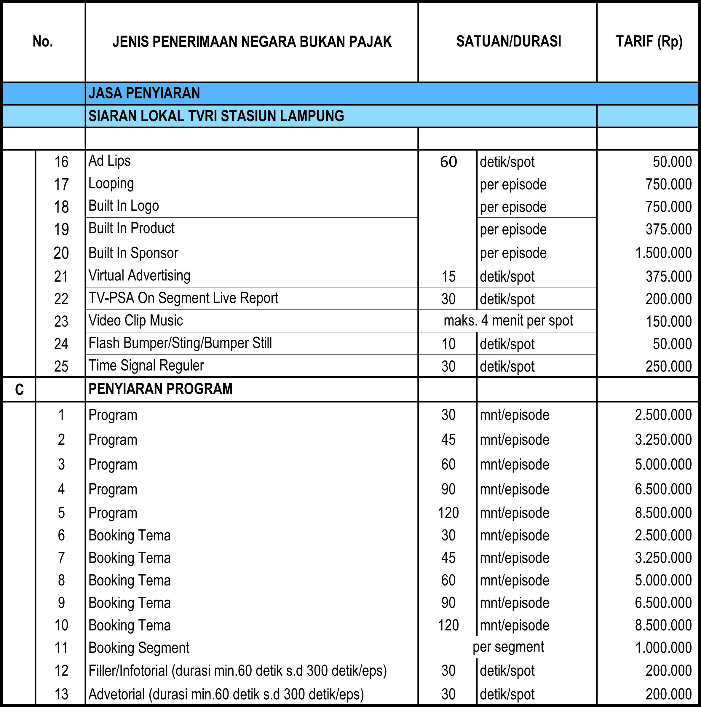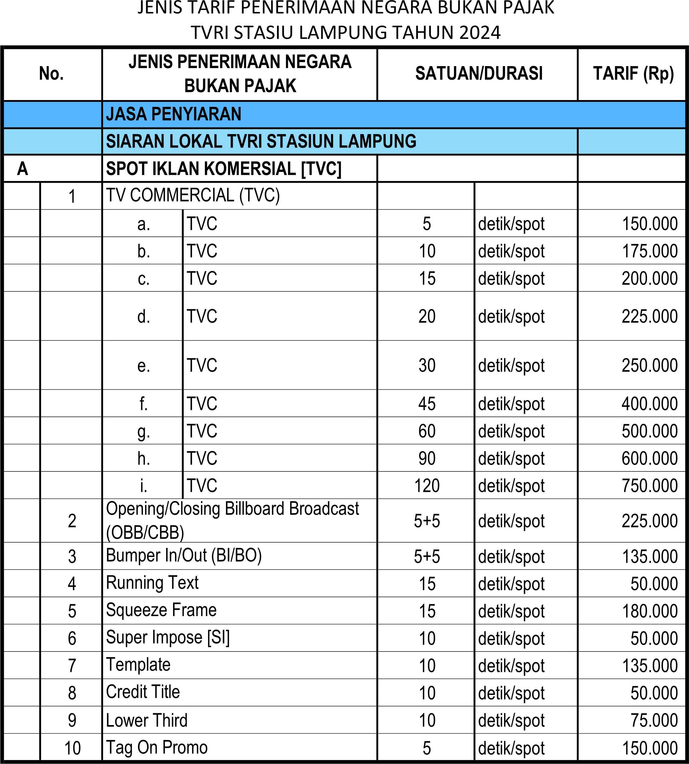 TVRI Lampung menayangkan berbagai program, termasuk program-program nasional dan lokal.